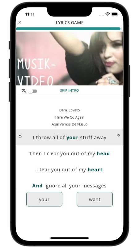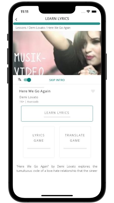 In addition to reading lyric translations, you can now learn English with music and lyrics from your favorite artists.