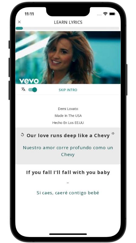 In addition to reading lyric translations, you can now learn English with music and lyrics from your favorite artists.
