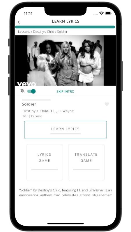 In addition to reading lyric translations, you can now learn English with music and lyrics from your favorite artists.