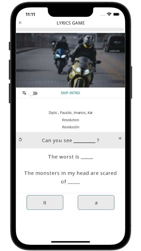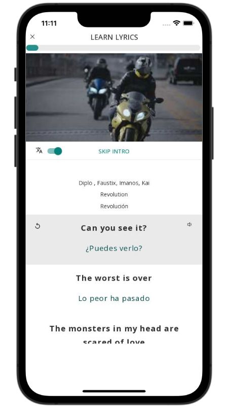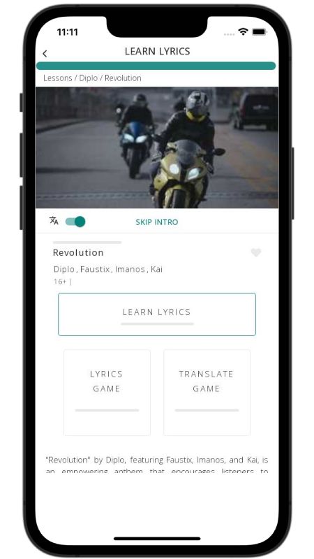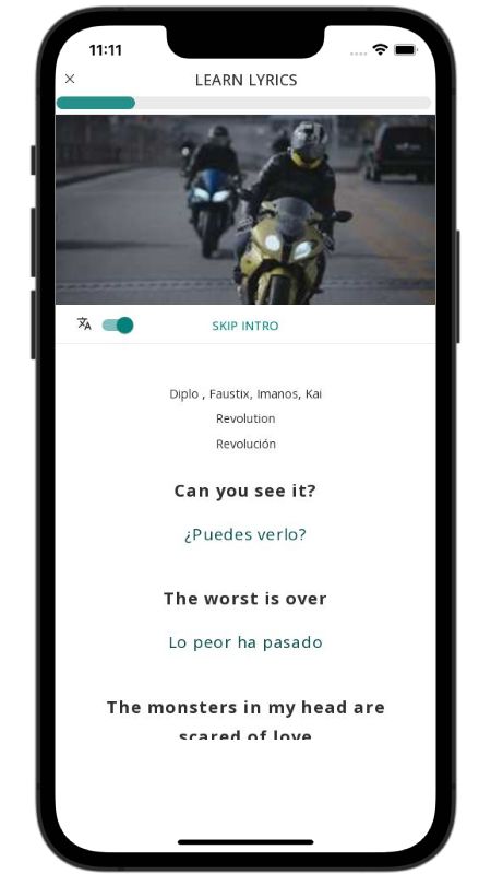 In addition to reading lyric translations, you can now learn English with music and lyrics from your favorite artists.