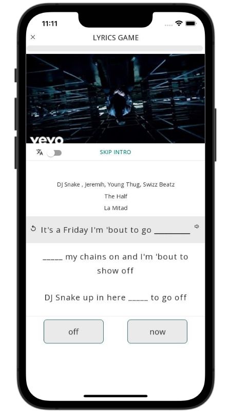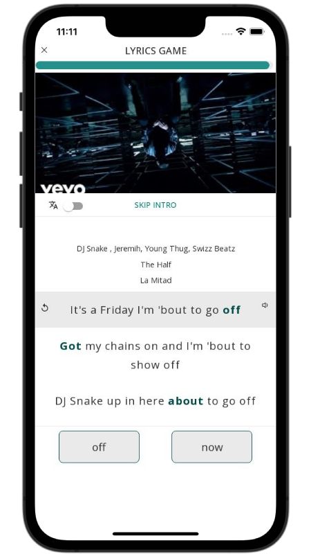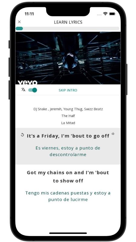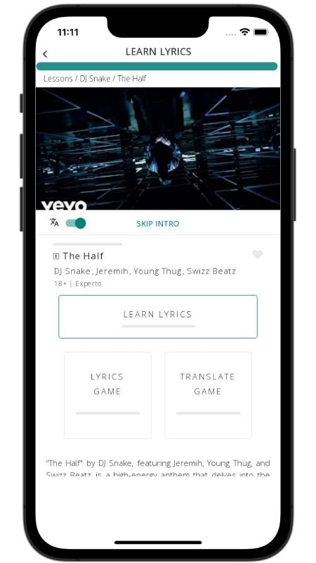 In addition to reading lyric translations, you can now learn English with music and lyrics from your favorite artists.