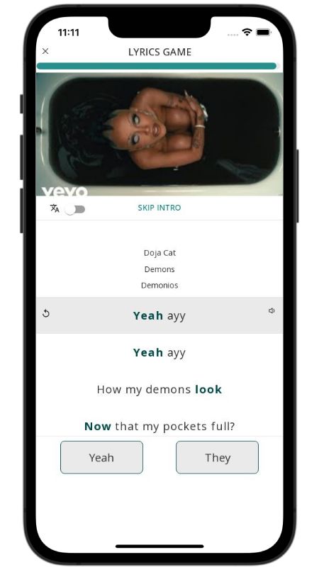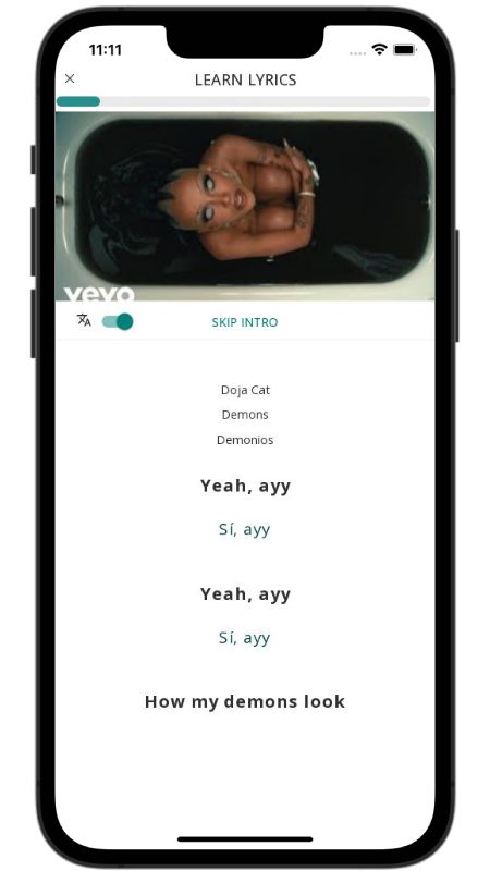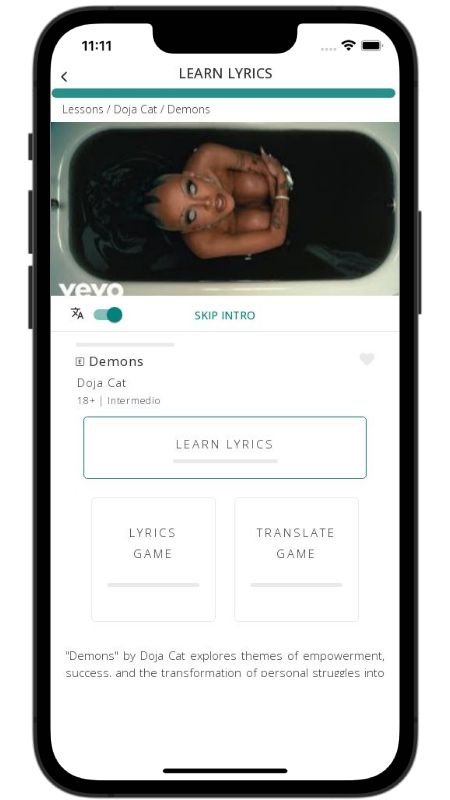 In addition to reading lyric translations, you can now learn English with music and lyrics from your favorite artists.