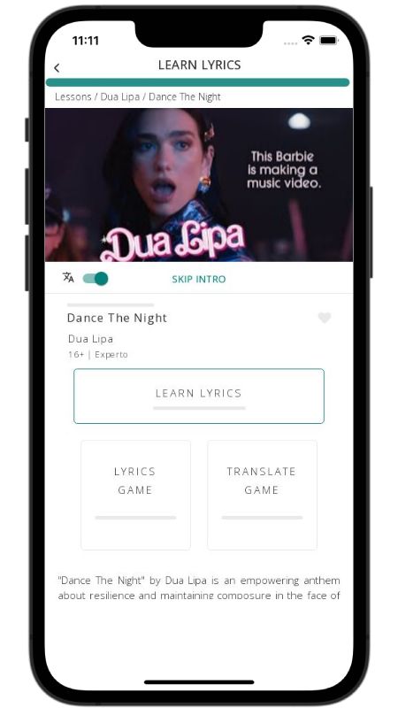 In addition to reading lyric translations, you can now learn English with music and lyrics from your favorite artists.