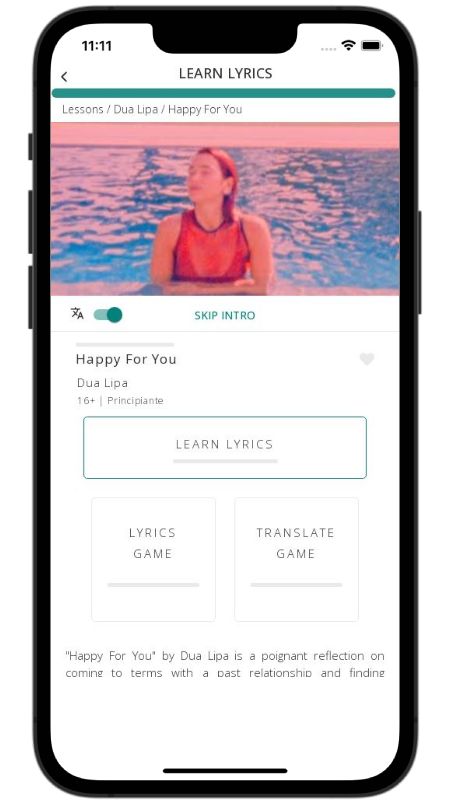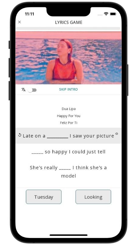 In addition to reading lyric translations, you can now learn English with music and lyrics from your favorite artists.