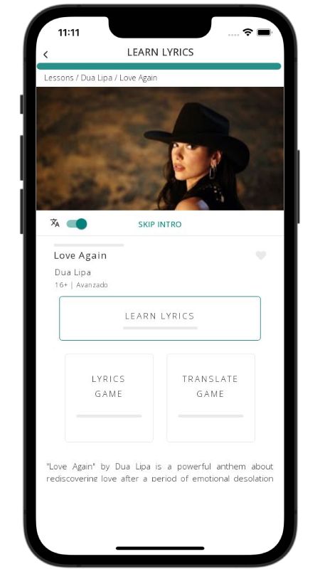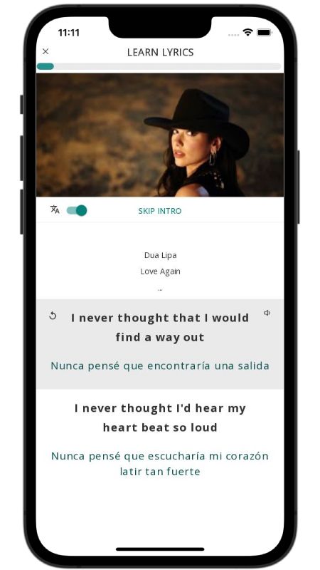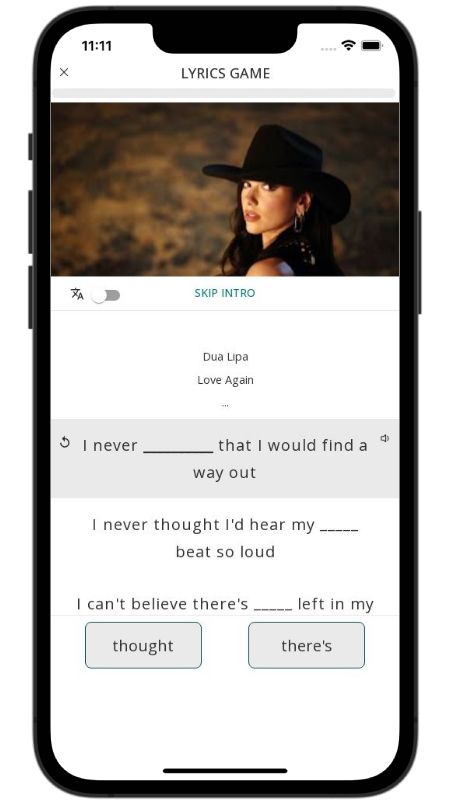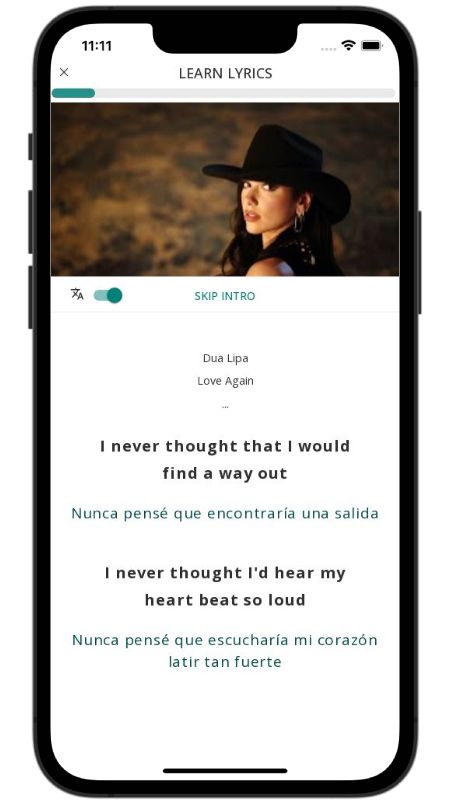 In addition to reading lyric translations, you can now learn English with music and lyrics from your favorite artists.