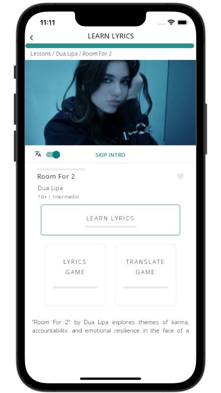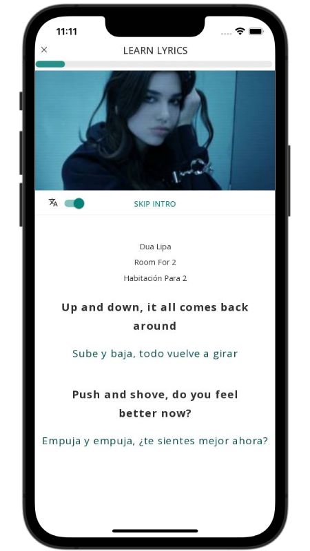 In addition to reading lyric translations, you can now learn English with music and lyrics from your favorite artists.