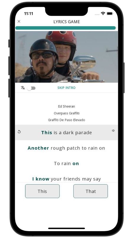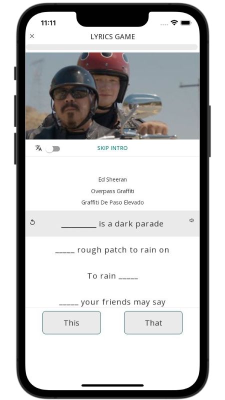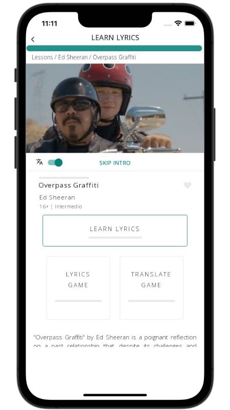 In addition to reading lyric translations, you can now learn English with music and lyrics from your favorite artists.