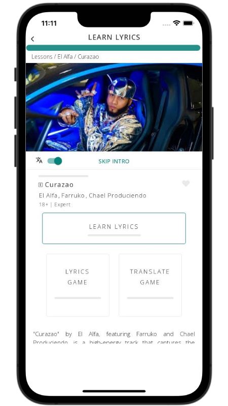 In addition to reading lyric translations, you can now learn Spanish with music and lyrics from your favorite artists.
