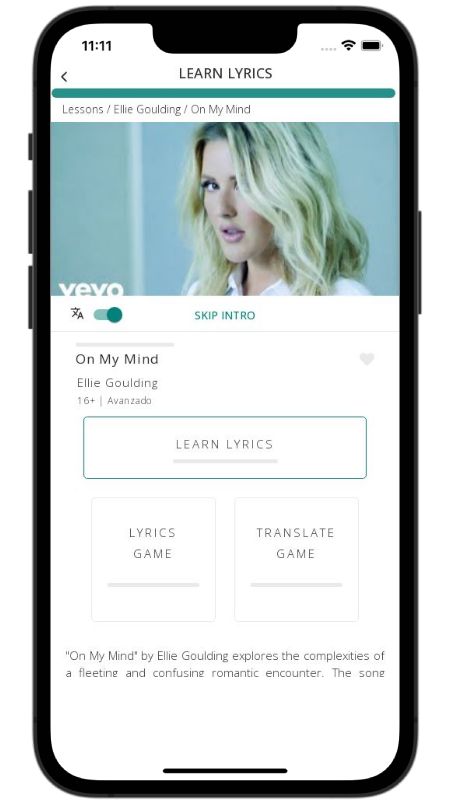 In addition to reading lyric translations, you can now learn English with music and lyrics from your favorite artists.