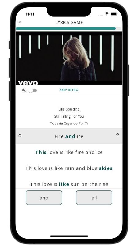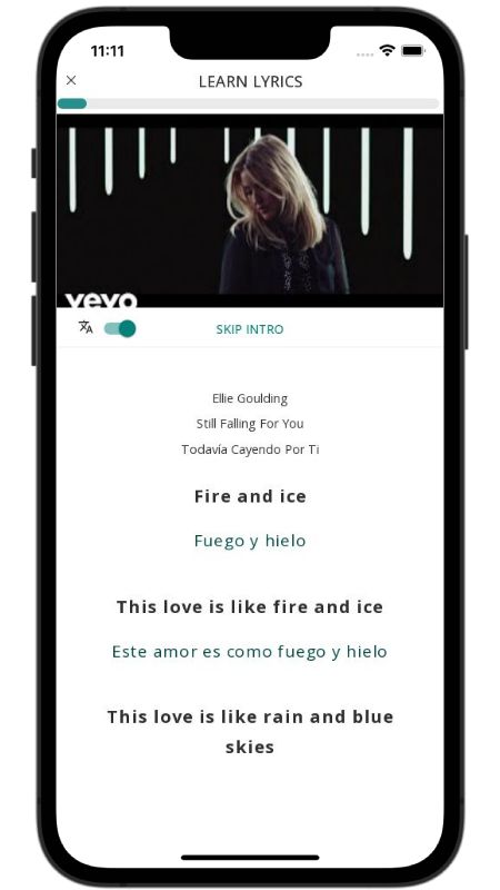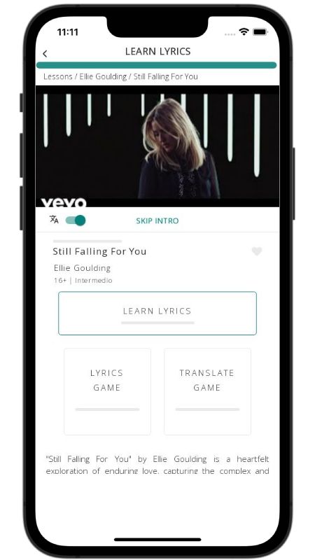 In addition to reading lyric translations, you can now learn English with music and lyrics from your favorite artists.