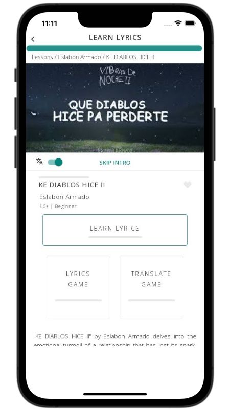In addition to reading lyric translations, you can now learn Spanish with music and lyrics from your favorite artists.