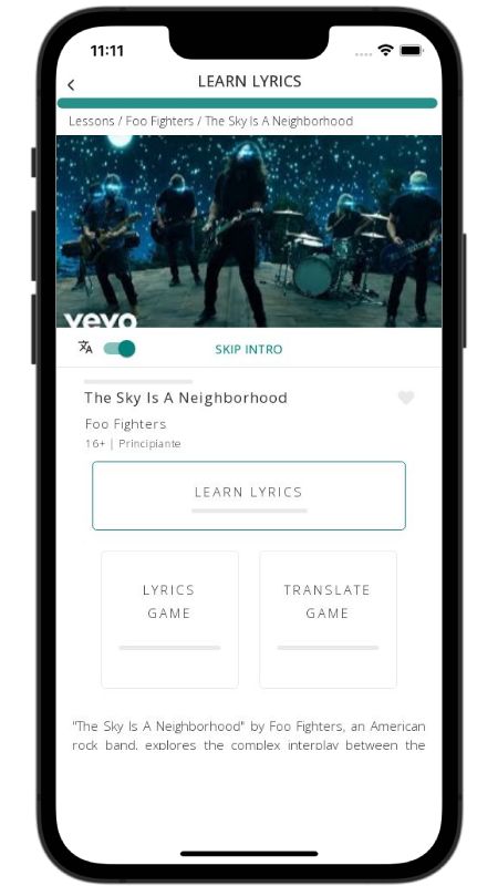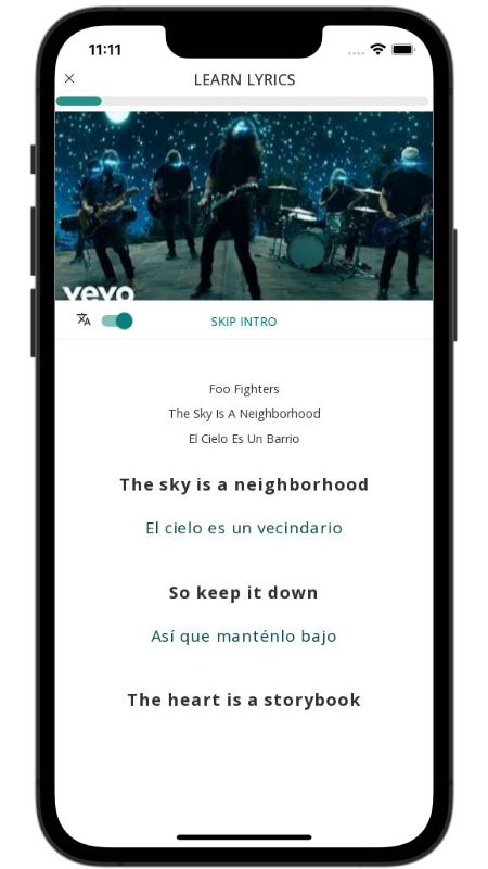 In addition to reading lyric translations, you can now learn English with music and lyrics from your favorite artists.