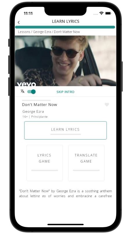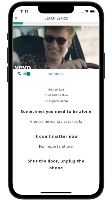 In addition to reading lyric translations, you can now learn English with music and lyrics from your favorite artists.