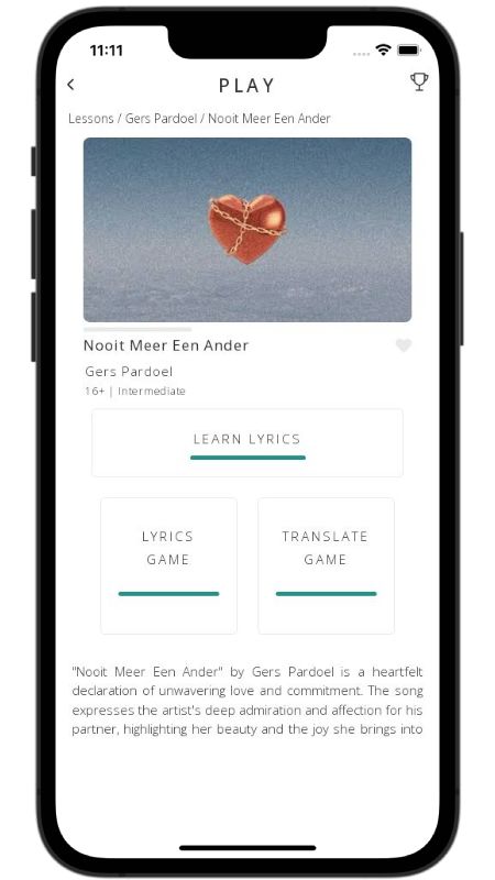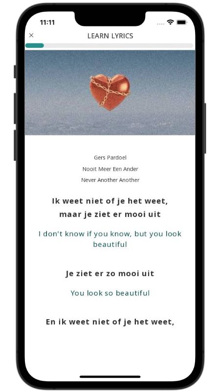 In addition to reading lyric translations, you can now learn Dutch with music and lyrics from your favorite artists.