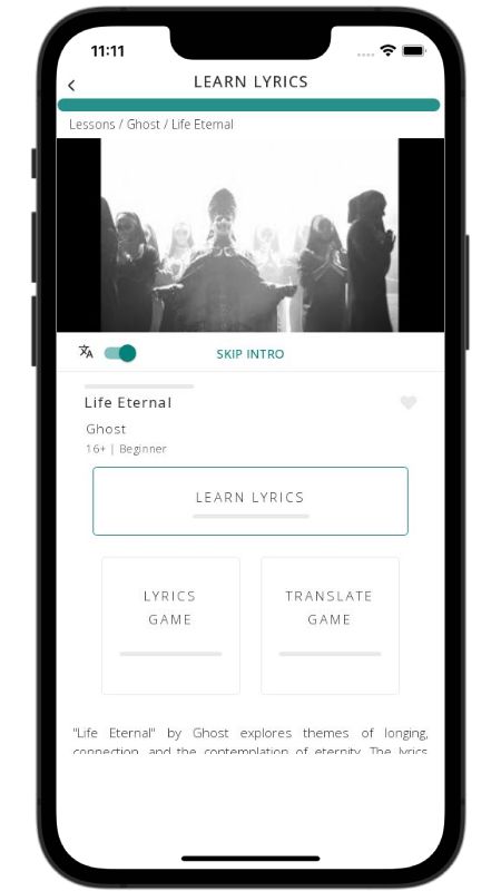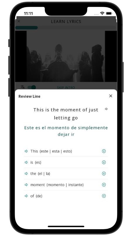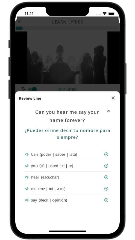 In addition to reading lyric translations, you can now learn English with music and lyrics from your favorite artists.