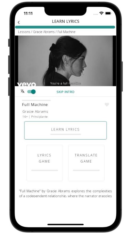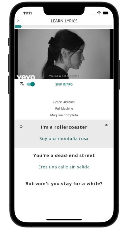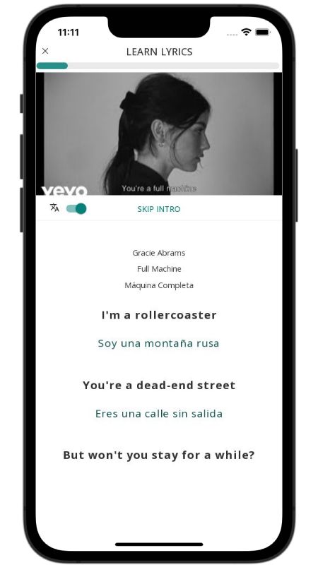 In addition to reading lyric translations, you can now learn English with music and lyrics from your favorite artists.