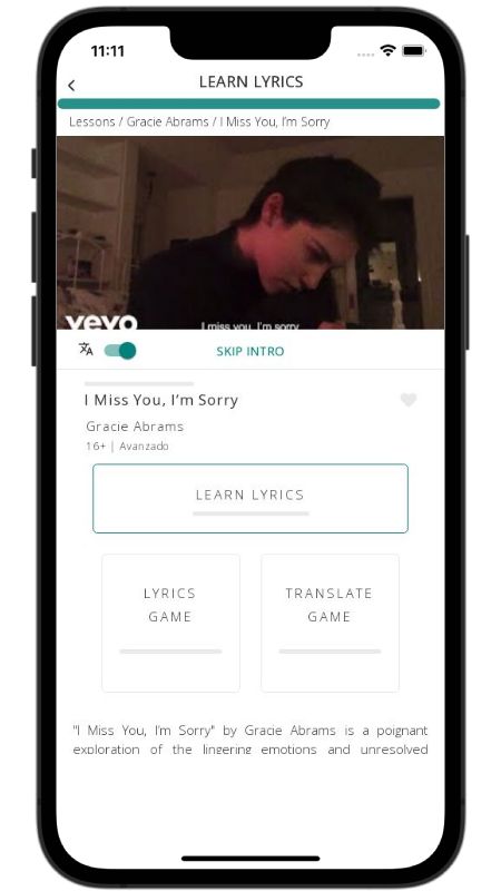 In addition to reading lyric translations, you can now learn English with music and lyrics from your favorite artists.