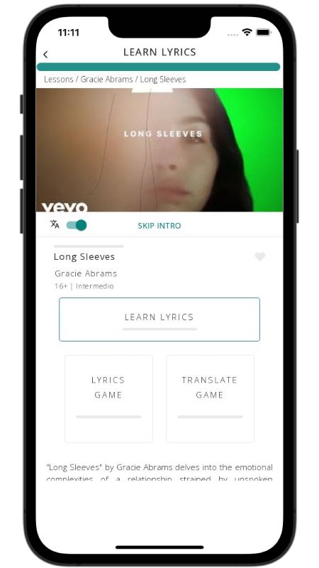 In addition to reading lyric translations, you can now learn English with music and lyrics from your favorite artists.