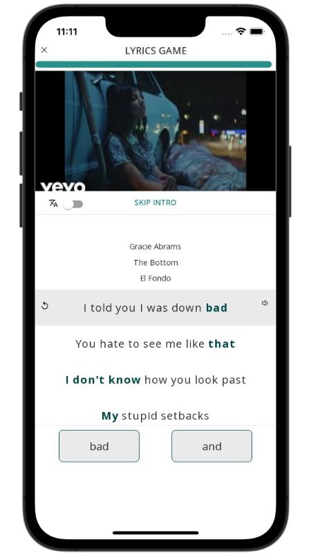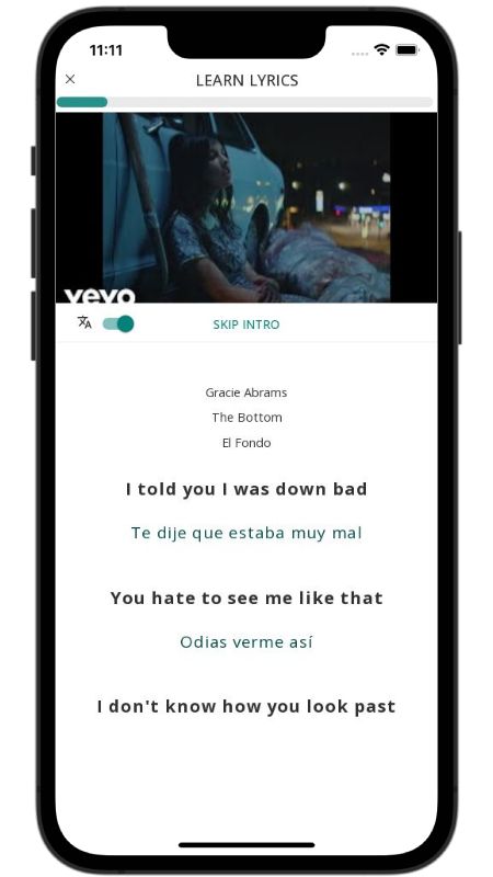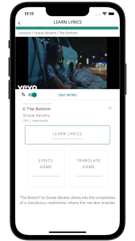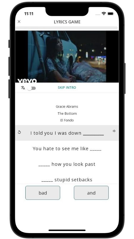 In addition to reading lyric translations, you can now learn English with music and lyrics from your favorite artists.