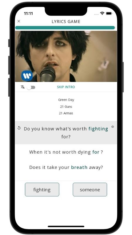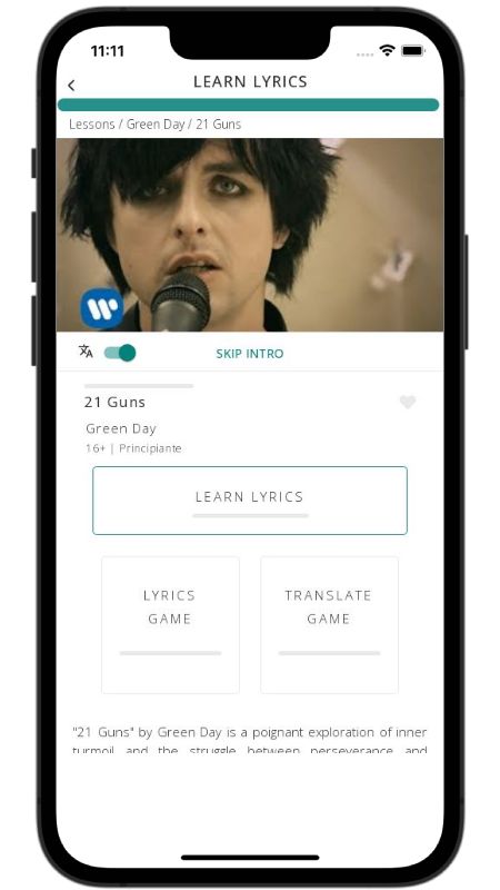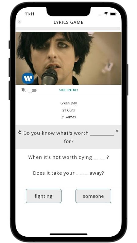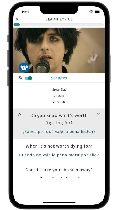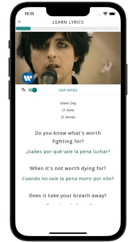 In addition to reading lyric translations, you can now learn English with music and lyrics from your favorite artists.