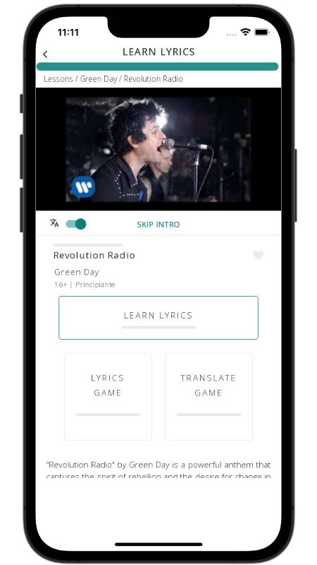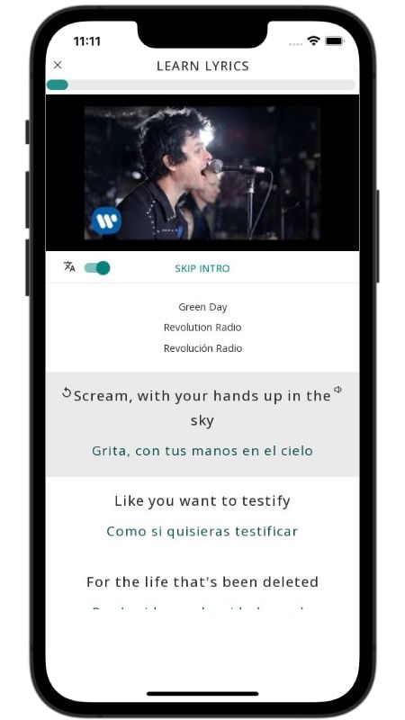 In addition to reading lyric translations, you can now learn English with music and lyrics from your favorite artists.