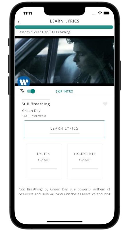 In addition to reading lyric translations, you can now learn English with music and lyrics from your favorite artists.