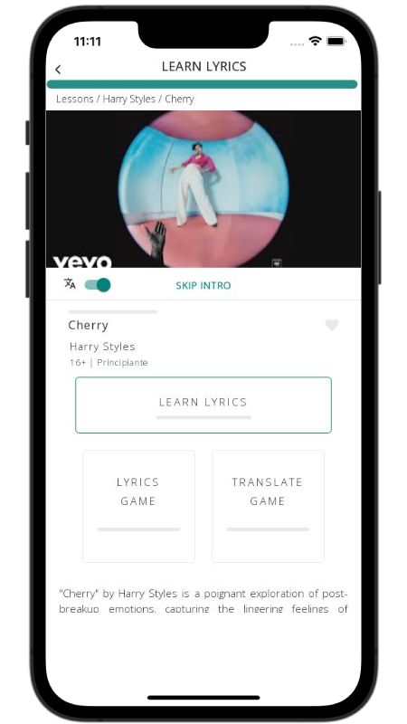 In addition to reading lyric translations, you can now learn English with music and lyrics from your favorite artists.