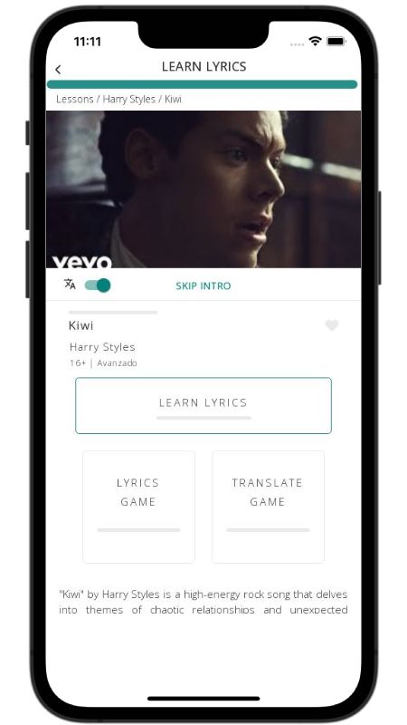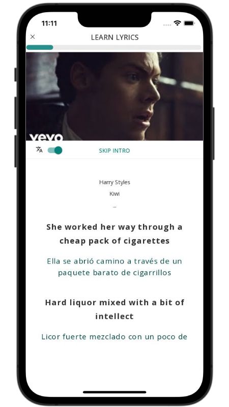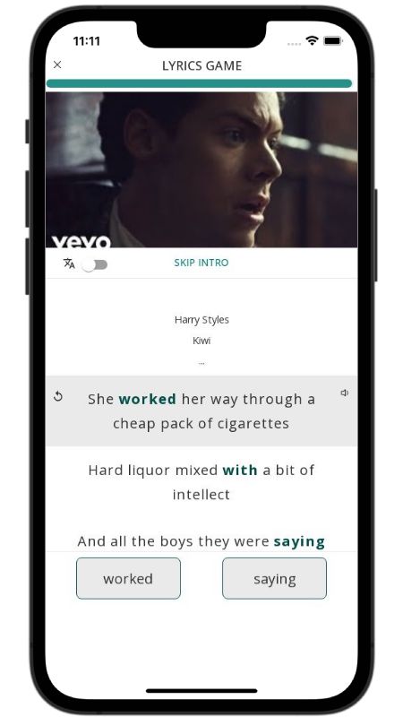 In addition to reading lyric translations, you can now learn English with music and lyrics from your favorite artists.