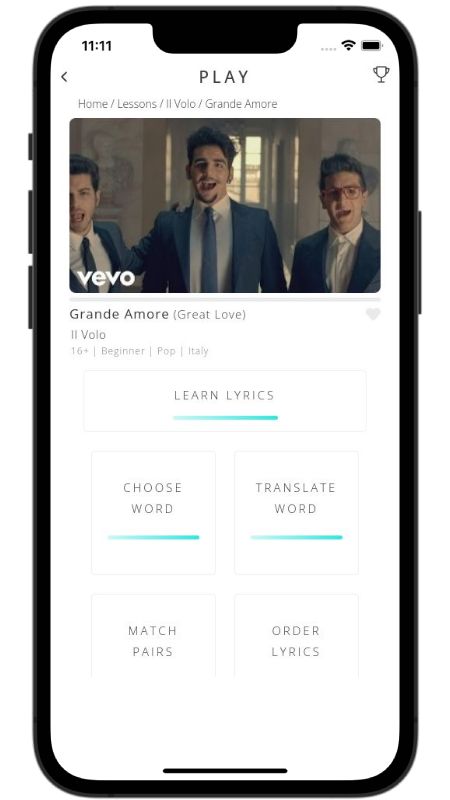 In addition to reading lyric translations, you can now learn Italian with music and lyrics from your favorite artists.