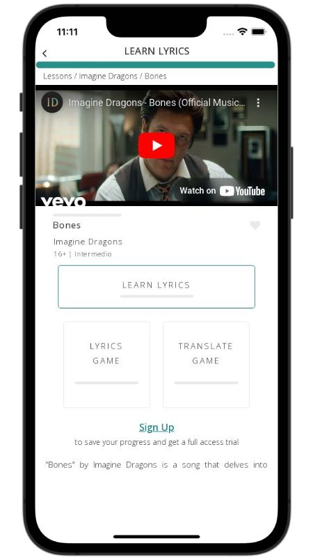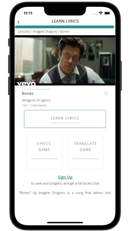In addition to reading lyric translations, you can now learn English with music and lyrics from your favorite artists.
