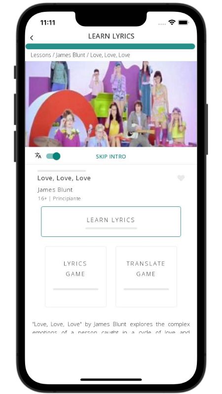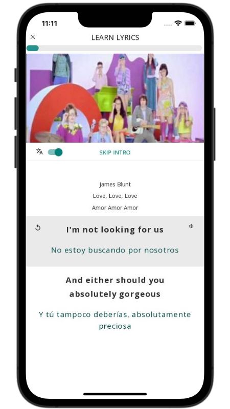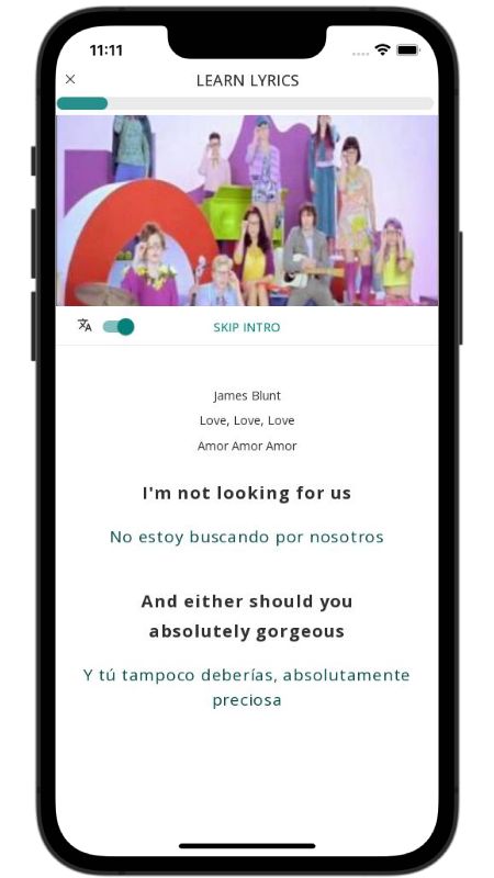 In addition to reading lyric translations, you can now learn English with music and lyrics from your favorite artists.