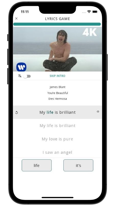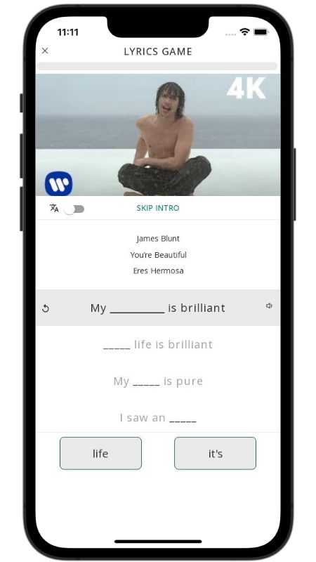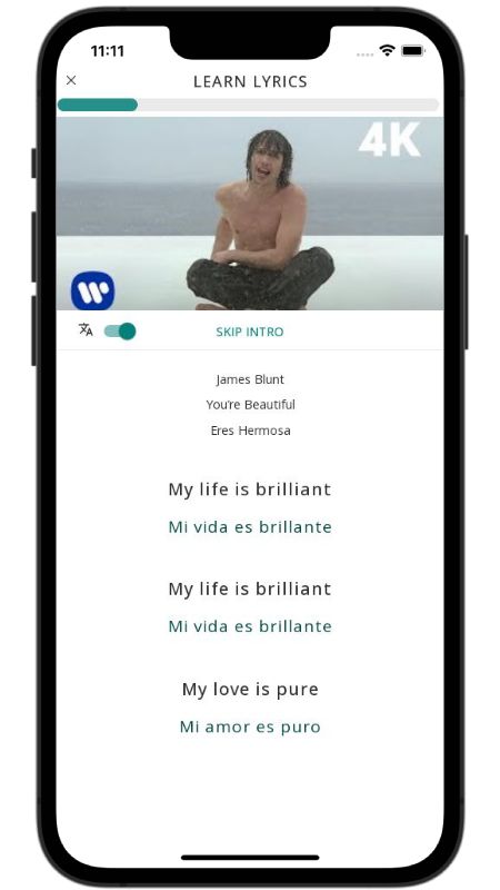 In addition to reading lyric translations, you can now learn English with music and lyrics from your favorite artists.