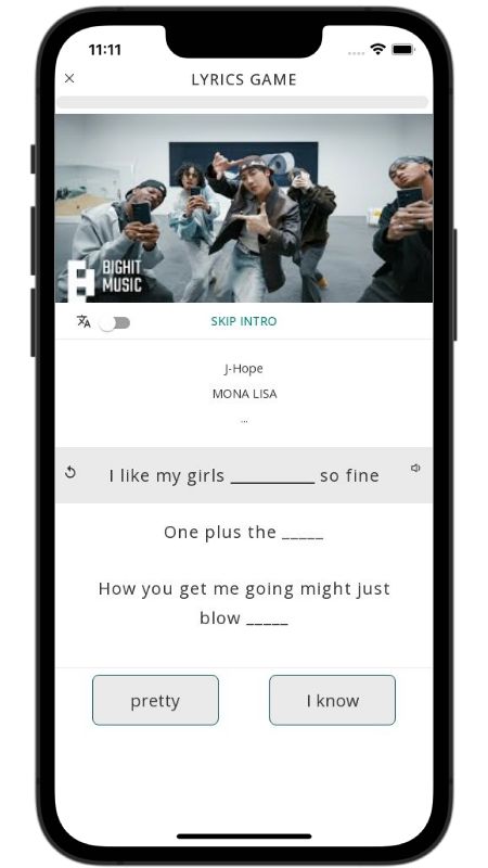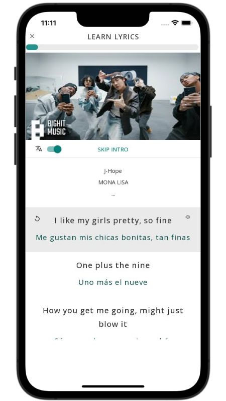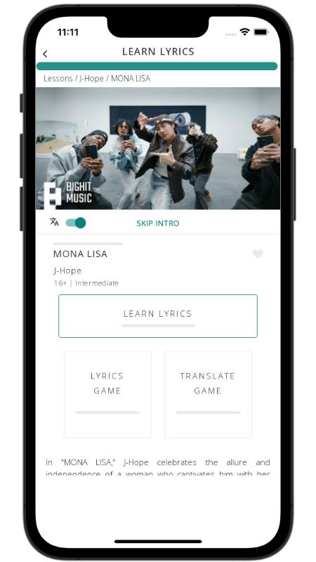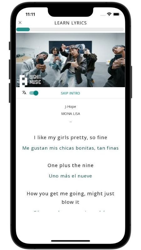 In addition to reading lyric translations, you can now learn English with music and lyrics from your favorite artists.