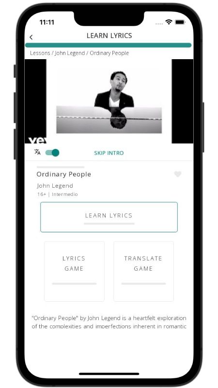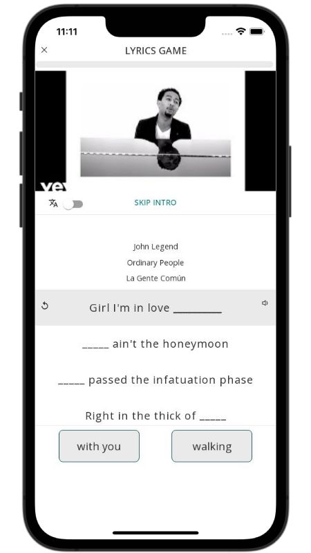 In addition to reading lyric translations, you can now learn English with music and lyrics from your favorite artists.