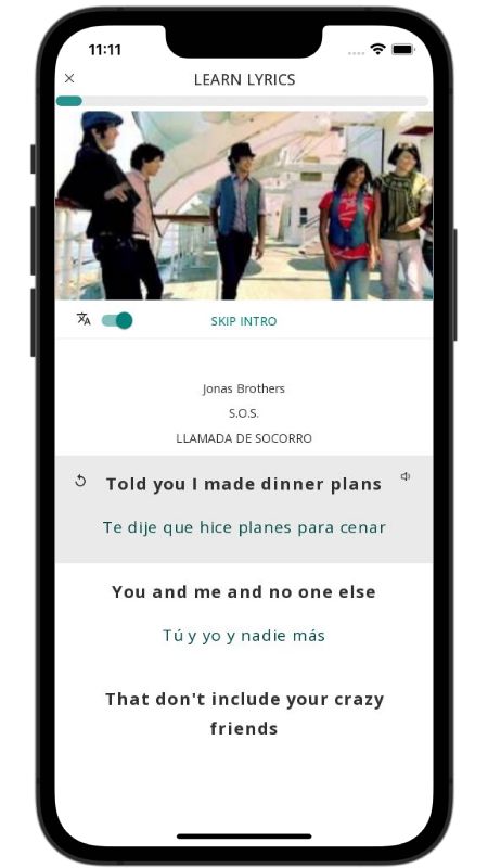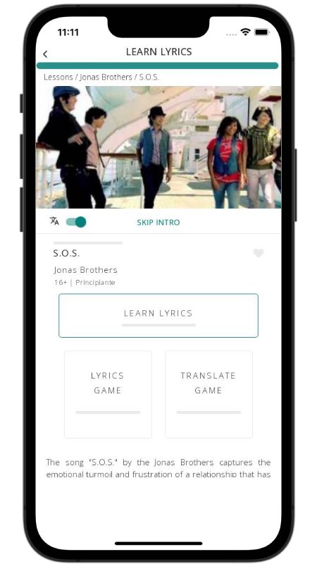 In addition to reading lyric translations, you can now learn English with music and lyrics from your favorite artists.