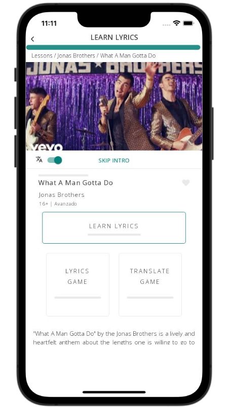 In addition to reading lyric translations, you can now learn English with music and lyrics from your favorite artists.