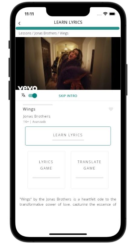 In addition to reading lyric translations, you can now learn English with music and lyrics from your favorite artists.