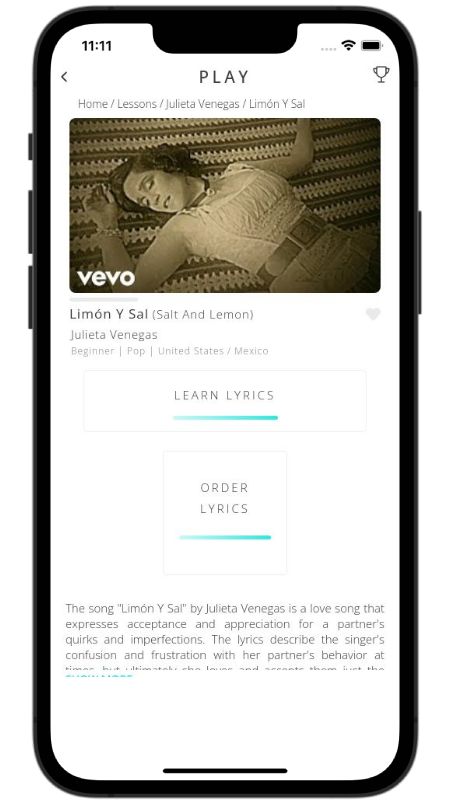 In addition to reading lyric translations, you can now learn Spanish with music and lyrics from your favorite artists.
