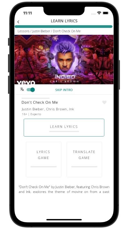 In addition to reading lyric translations, you can now learn English with music and lyrics from your favorite artists.