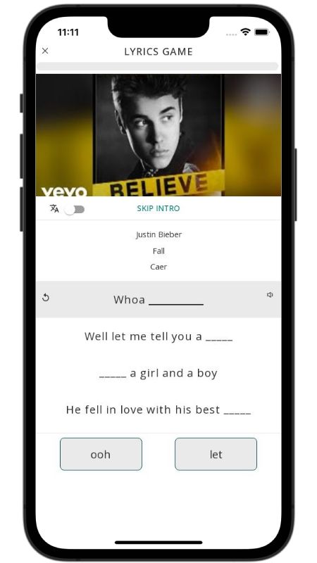 In addition to reading lyric translations, you can now learn English with music and lyrics from your favorite artists.