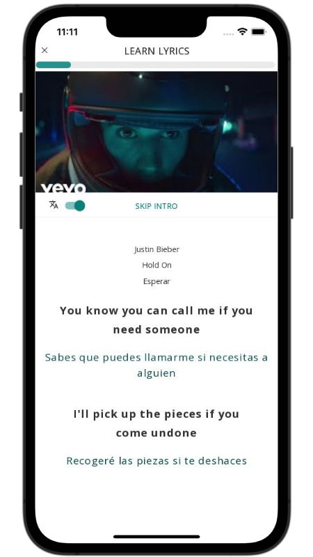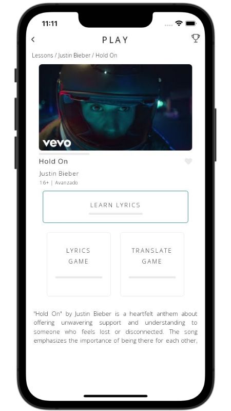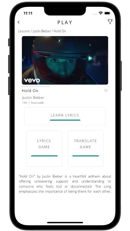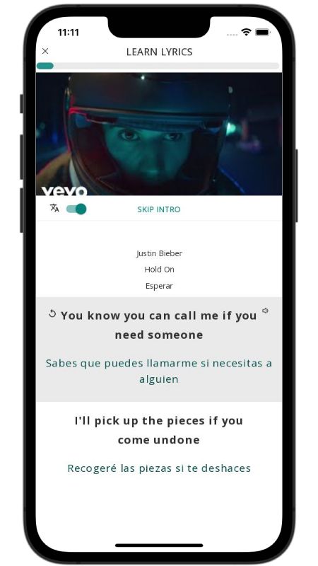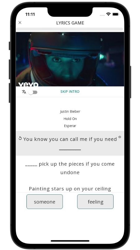 In addition to reading lyric translations, you can now learn English with music and lyrics from your favorite artists.