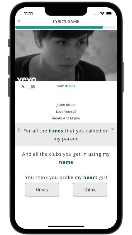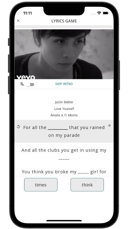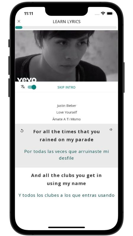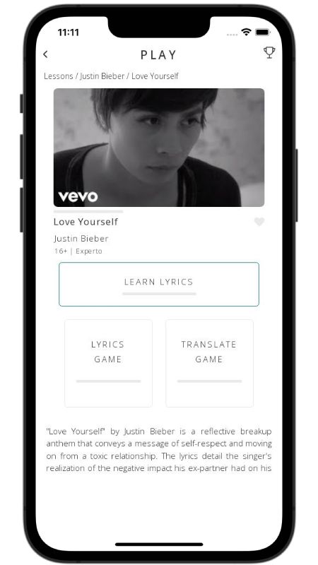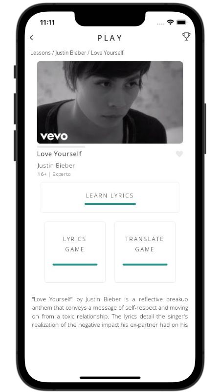 In addition to reading lyric translations, you can now learn English with music and lyrics from your favorite artists.
