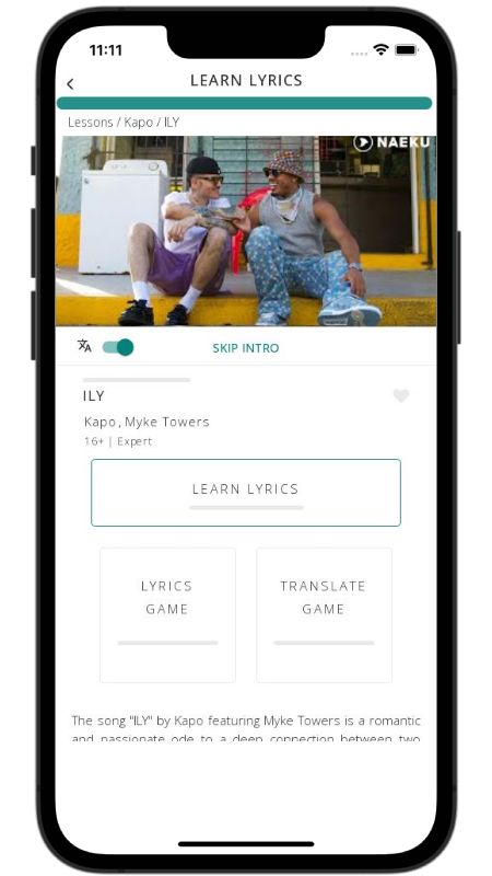 The repeated hook “I love you, I-L-Y” captures that childlike excitement of new passion, while vivid lines about dancing close, tattooing initials, and turning living-rooms into dance floors show just how spontaneous and all-consuming the connection is. At its heart the song is a joyful promise: “ahí donde estás tú, quiero estar yo,” meaning wherever you are, I want to be. It is a feel-good anthem that lets learners soak up affectionate Spanish phrases, contemporary slang, and a reminder that real chemistry can make the ordinary feel infinite.