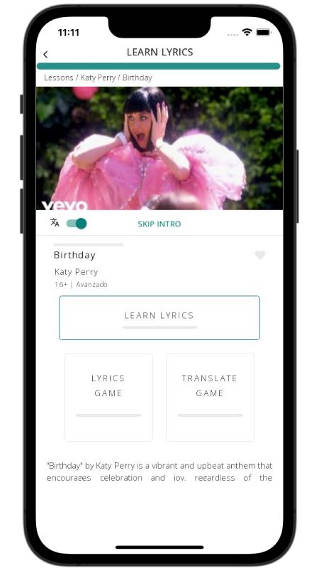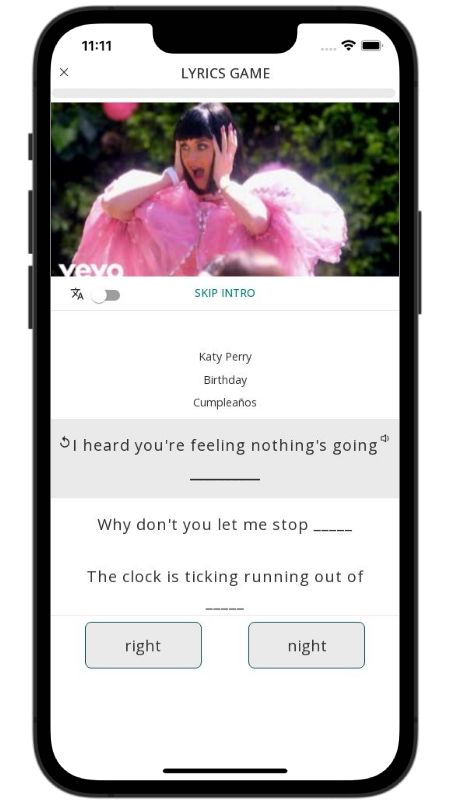 In addition to reading lyric translations, you can now learn English with music and lyrics from your favorite artists.