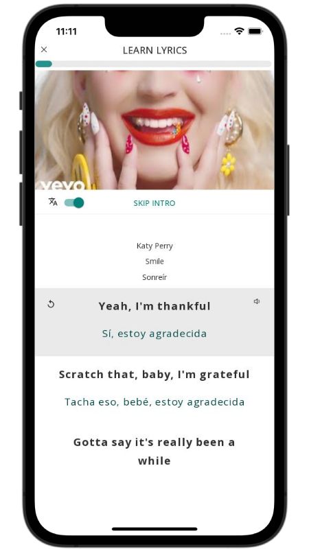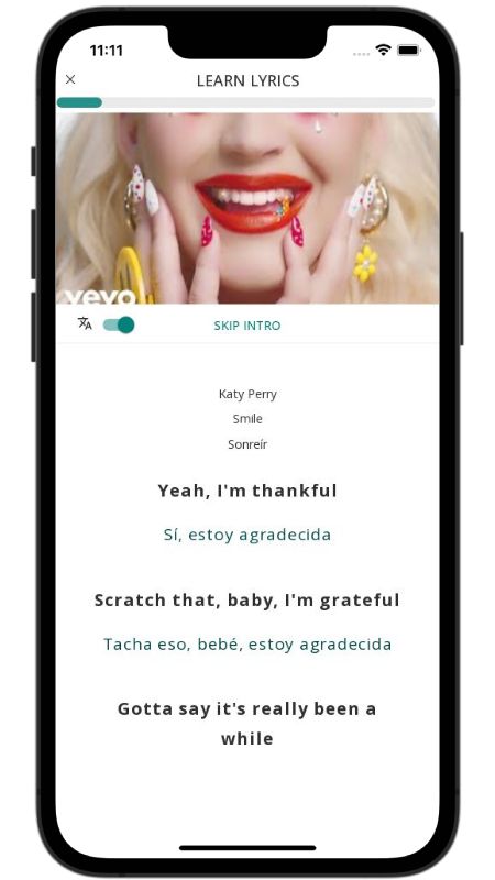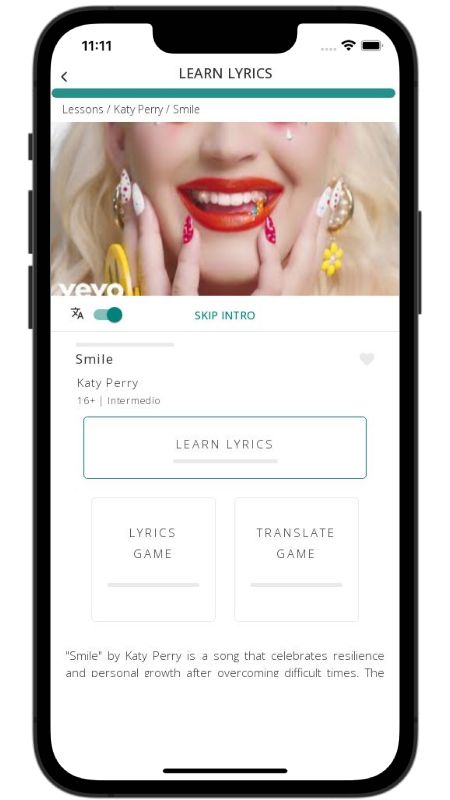 In addition to reading lyric translations, you can now learn English with music and lyrics from your favorite artists.