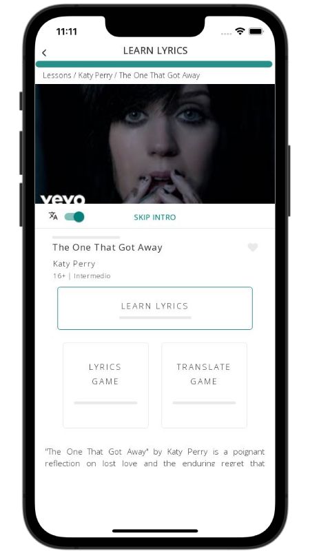 In addition to reading lyric translations, you can now learn English with music and lyrics from your favorite artists.