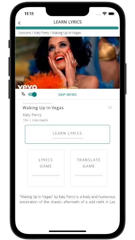 In addition to reading lyric translations, you can now learn English with music and lyrics from your favorite artists.