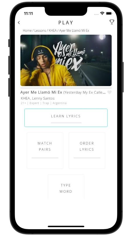 In addition to reading lyric translations, you can now learn Spanish with music and lyrics from your favorite artists.