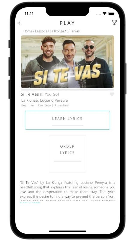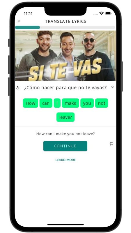 In addition to reading lyric translations, you can now learn Spanish with music and lyrics from your favorite artists.