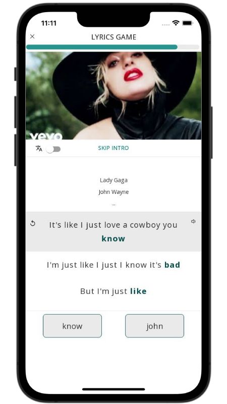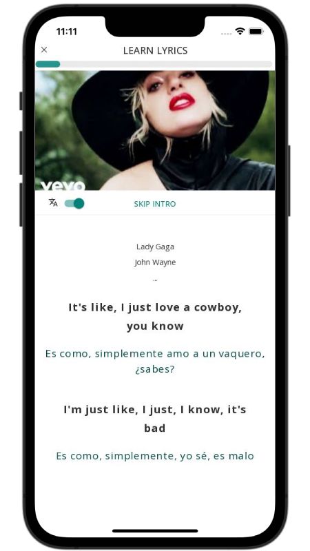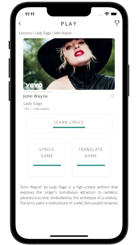 In addition to reading lyric translations, you can now learn English with music and lyrics from your favorite artists.